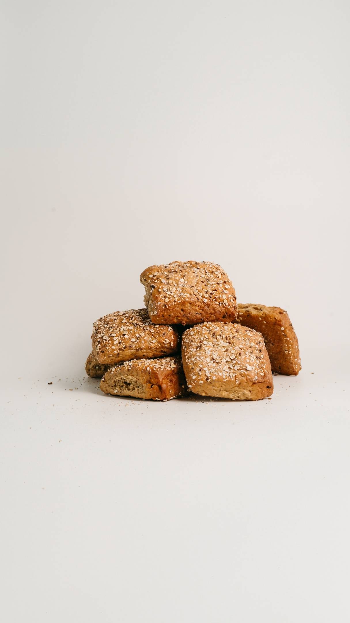 En mjuk och fröig frukostbulle med klassisk bräckform. Bakad med rågmjöl, vår egen rågsurdeg, durumkärnor, linfrö, vört och havssalt. Toppad med havregryn och linfrö.